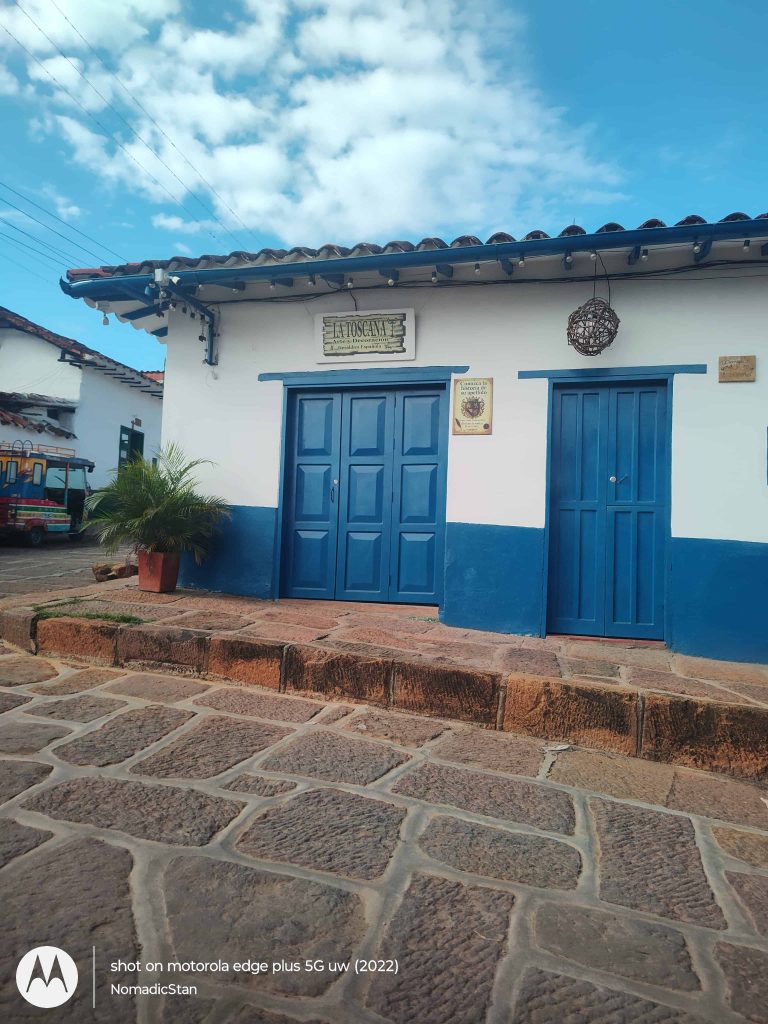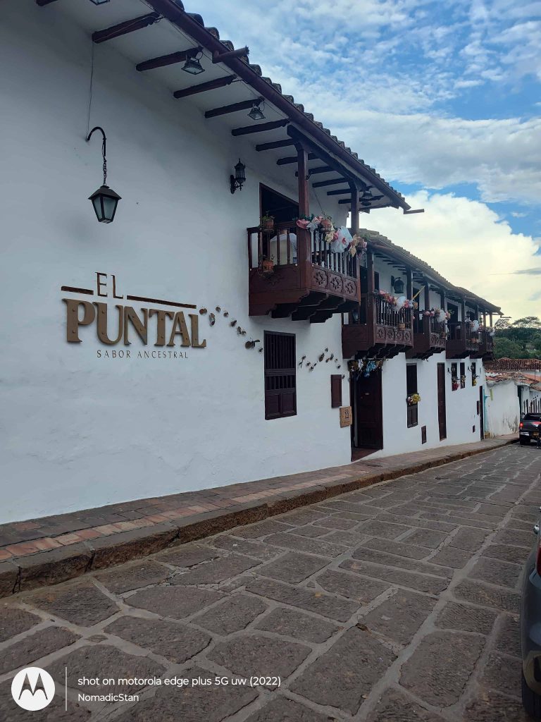A colonial-style town 15 minutes from Bucaramanga with whitewashed buildings and cobblestone streets.