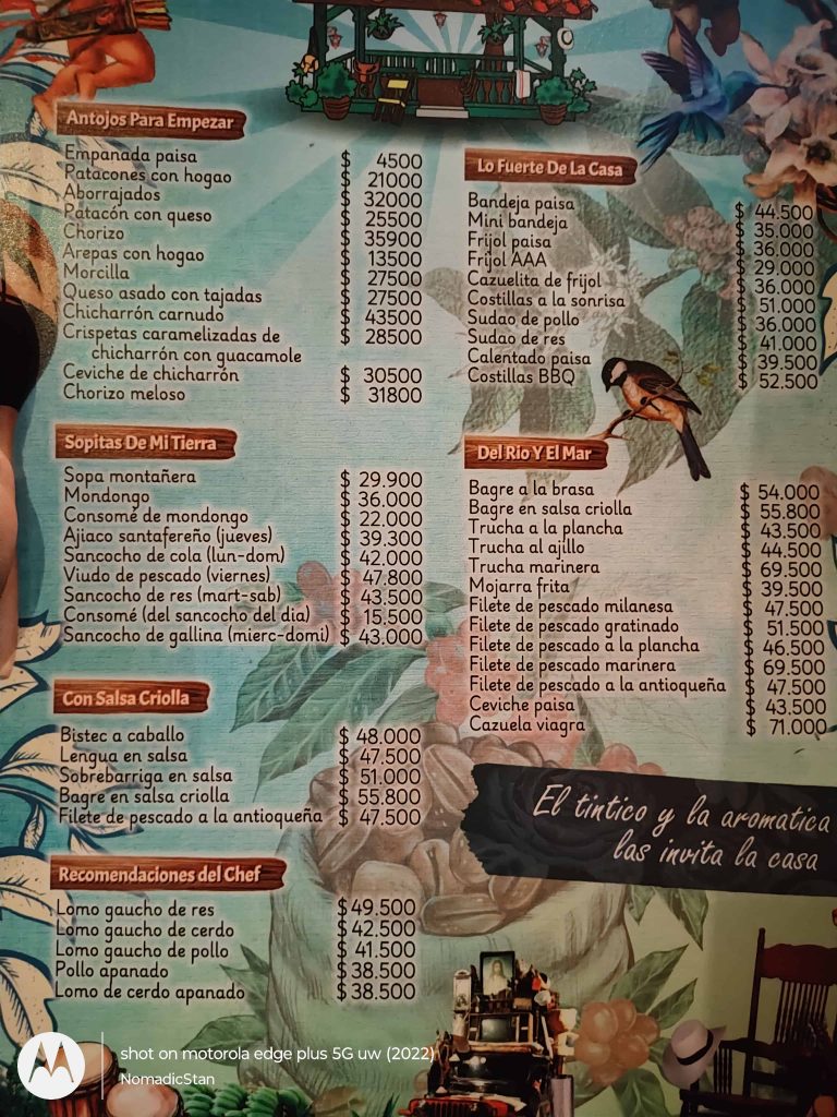 The portions are massive and perfect for sharing—or for the very hungry traveler. Beyond the bandeja paisa, you’ll also find dishes like sancocho de gallina (hen soup), grilled meats, arepas de chócolo, and a variety of empanadas and traditional sides.